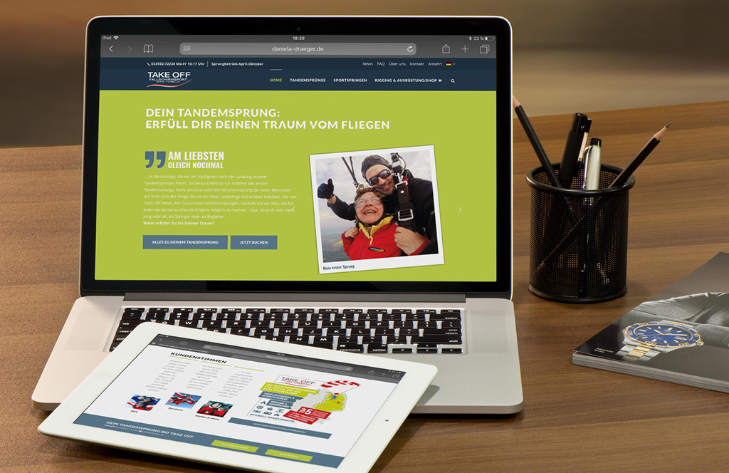 "Zu Beginn des Jahres 2018 stand für die TAKE OFF Fallschirmsport GmbH die Entscheidung im Raum, ihre Marketingbetreuung komplett neu zu organisieren. Insgesamt beruhte der unbedingte Agenturwechsel auch maßgeblich auf der nicht zufriedenstellenden Zusammenarbeit und den zu teuer bezahlten Ergebnissen seitens der vorangegangenen Partner.